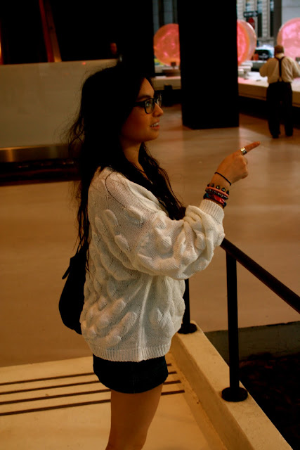 | Forever 21 sweater, thrifted denim mini, Pour la Victoire bag, Kelsi Dagger moto boot |